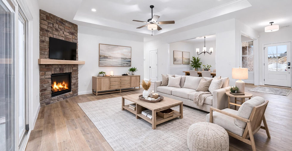Welcome to the Bloomfield, this thoughtfully designed 3 bedroom, 2 bath home with a spacious 3 CAR garage blends modern style with everyday comfort, all set on a large lot. The inviting exterior showcases rich chocolate brown finishes and welcoming covered front and back porches - perfect for relaxing or entertaining. Inside, the home is filled with natural light and designed with a thoughtful layout that provides both open gathering spaces and private retreats. LVP flooring flows throughout the main living areas, with cozy carpet in two bedrooms for added comfort. The heart of the home is the stunning kitchen, featuring quartz countertops, brushed gold hardware, a premium Blanco sink, pantry, breakfast nook and beautifully on-trend natural cabinetry that creates a soothing, calming atmosphere. The open living area is anchored by a striking stone gas fireplace, offering a warm focal point for the space. The generous primary suite provides a peaceful escape with a walk-in closet, double vanity, and a fully tiled shower. Additional highlights include a dedicated office, formal dining room, utility sink in the laundry room, tankless gas water heater, and convenient pull-down attic access with additional storage. With an intentional focus on elegance and functionality, The Bloomfield is one of the builder's most sought after designs. It offers modern finishes, quality construction, and comfortable living in one of Nicholasville's most desirable neighborhoods.